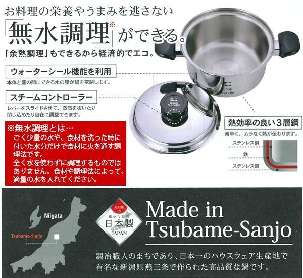 | 「無水調理」ができる3層鋼両手鍋。 |