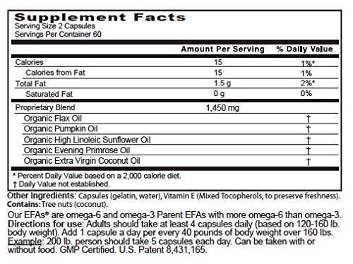 YES EFA's are organically produced and cold-pressed seed oils containing "parent" omega 6 and "parent" omega 3. Our EFAs are far better than fish oil supplements. Fish oils are not as pure or as effective as organic or wildcrafted seed oils. We developed our EFAs to achieve specific, calculated results and they really work. YESTM Ultimate EFAs contain organic high linoleic Safflower oil, organic sunflower oil, and a small amount of organic Evening Primrose oil, all excellent sources of parent omega 6, along with organic flax oil for parent omega 3, to obtain what we consider the ideal science-based "parent" omega 6/3 combination. All of our oils are plant based.Feature