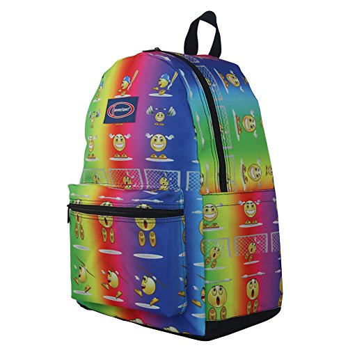 -. Brand : Jeremysport -. Department : boys -. Feature : Simple design, fashionable and suitable for travel,school and sports. / Approx Dimensions:12.5" L x 17" H x 7" W / Compartments: 2*side pouch, 1* zipper pocket on the front , 1*laptop compartment (15") / Durable lightweight backpack: high quality soft material (PU); smooth zippers; stain resistant; perfect size for college; not smell weird / Please allow little color difference due to different camera or light environment -. PackageQuantity : 1 -. ProductGroup : Apparel -. ProductTypeName : LAGE -. Size : 17Inch -. Title : Emoji Sports School Bag Rucksack Backpack