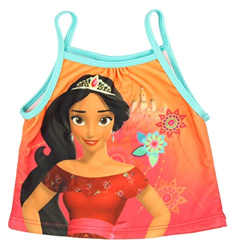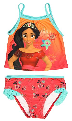 Elena of Avalor is a Latina teenage princess. She has saved her magical kingdom of Avalor from and evil sorceress and must now learn to rule as its crown princess. This toddler girls swim set features bright colors and a cute design! It is made of 88% polyester / 12% spandex with 100% polyester lining.Feature