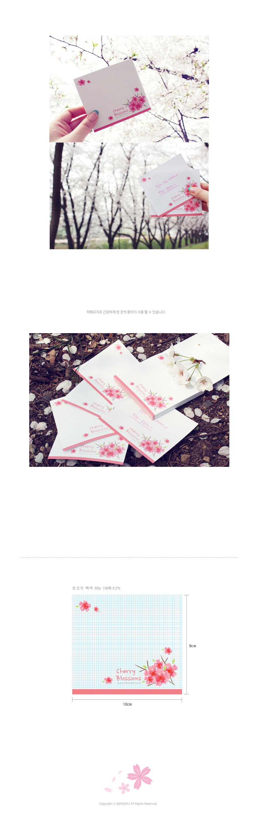 색연필 손그림 벚꽃일러스트가 귀여운 메모지입니다.