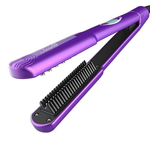 2.【No pounding on scalp for straightening purpose】This is not a flat iron for super straight hair; Long press of + to turn it on; the best hair straightening brush 2.0 for short and medium hair ever; compared with a paddle style hair straightening brush, it will not pound on scalp; It has 2 sides of heats and pressures, so more easier to handle and straighten your hair, especially for hair flip.