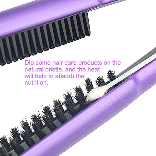 1.【New way for hair care】Use a Q tip to dip small amount of hair care products on the natural boar bristle. The heat and bristle will help the damaged hair to absorb the nutrition better. Since the bristle will have more contacts with hair when going through it, you will feel the nice volumn and puff. Applying hair finishing spray, it will be a perfect natural straightened look. The best choice for hair care, volume, and natural straightening look for short hair, medium length hair and BOB hair.