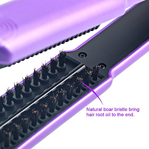 4.【Natural black silica infused for hair care】NATURAL MINERAL BLACK SILICA INFUSED in CERAMIC: high quality ceramic infused with mineral black silica can generate immense of ion to smooth hair, to give hair more nourishment, natural bristle generates small amount of oil to smooth hair and guide the hair when straightening. But please use a hair spay after styling.