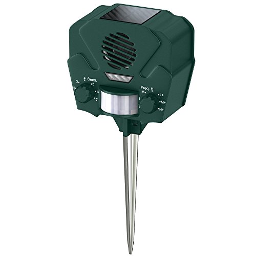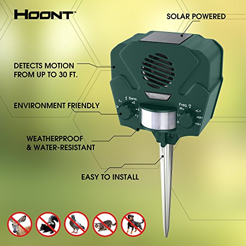 Hoont Advanced Solar Powered Ultrasonic Outdoor Animal and Pest Repeller + Flashing Strobe - Effectively scares Away All Outdoor Pests and Animals - Motion Activated