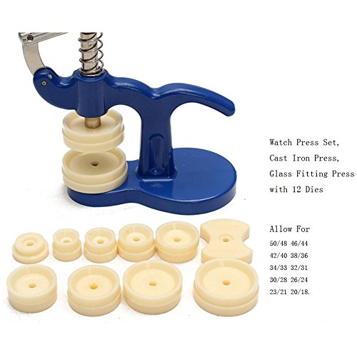 Kottle Watch Press Set, Watch Back Case Closer, Cast Iron Press, Glass Fitting Press with 12 Dies