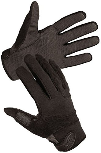 -. Feature : Digitized synthetic leather palms with Extreme-Grip non-slip cradles offering sure grip and positive weapon control / Neoprene and nylon Spandex laminated fabric back allows air circulation for maximum comfort and a proper, snug fit / Hook and loop closure keeps gloves firmly in place