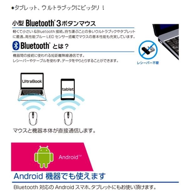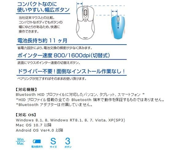 Bluetooth(R)3.0対応3ボタン小型BlueLEDマウスです。