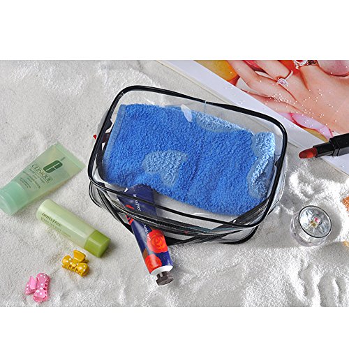 -. Feature : Made of Clear PVC material, Durable and Waterproof / Handbag design with zipper, Portable and Practical / The transparent design allows you to easily see what you need and where it is / Compact cosmetic bag will organize your beauty essentials neatly in place / Perfect to keep your needs, shampoo, conditioner, soap, lotions/cream, cosmetic, makeup, baby accessory, sporting gear, cell phone head phone cables, batteries, small accessories and a lot more when traveling or any storage use.