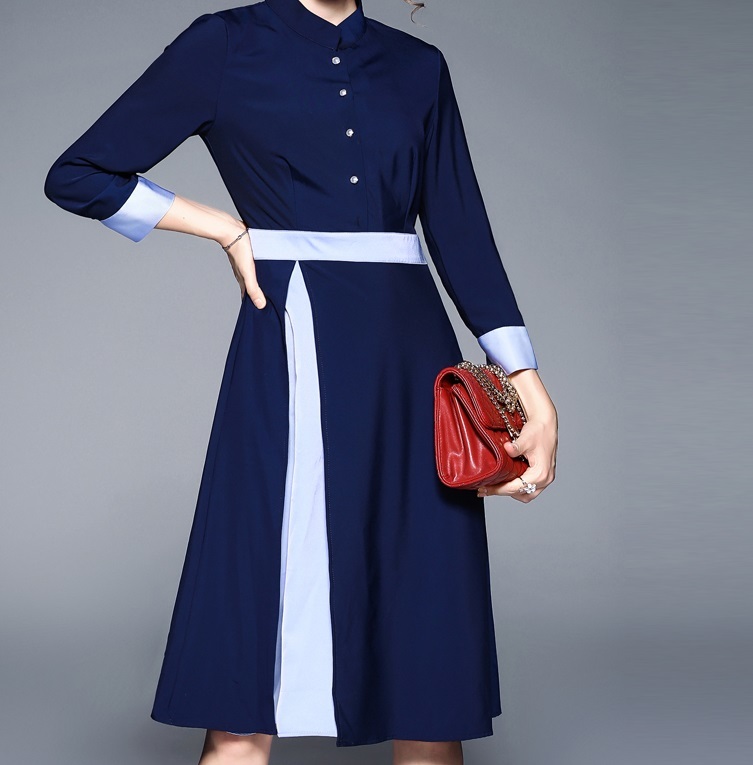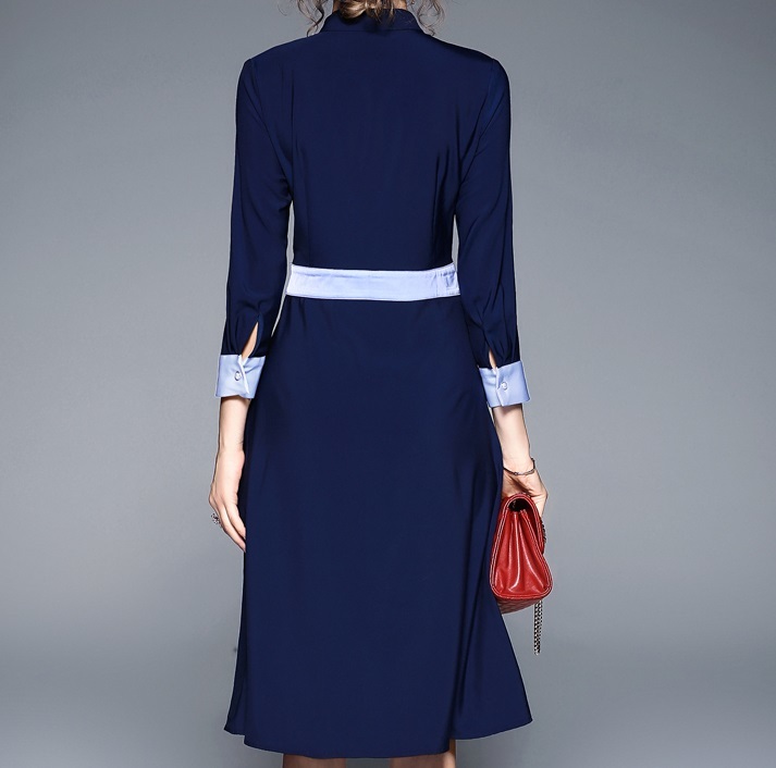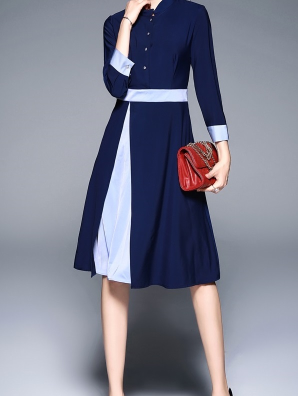 スリーブカラーのハイウエストワンピース。
