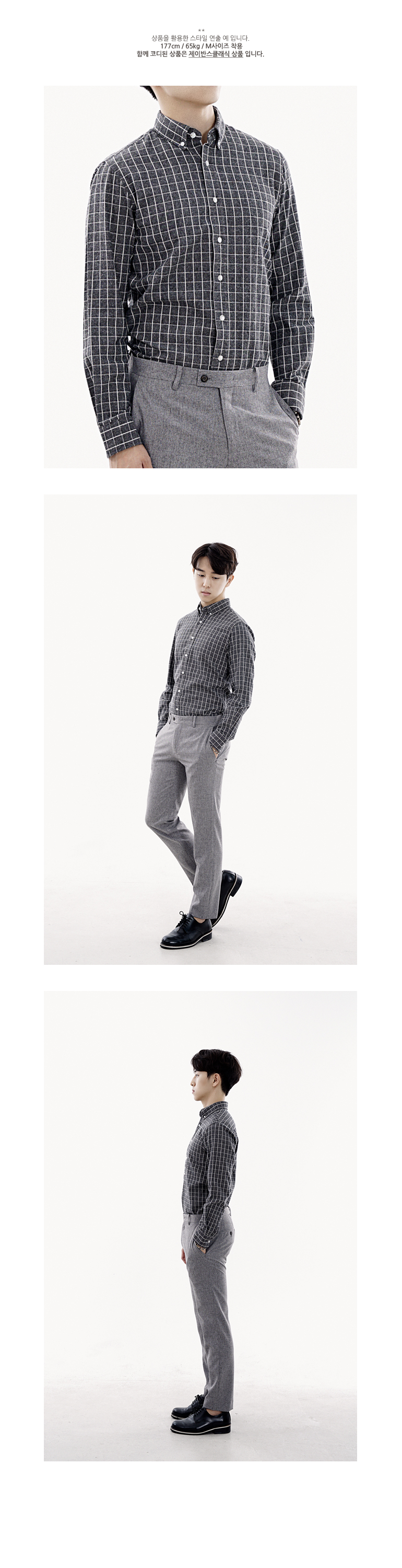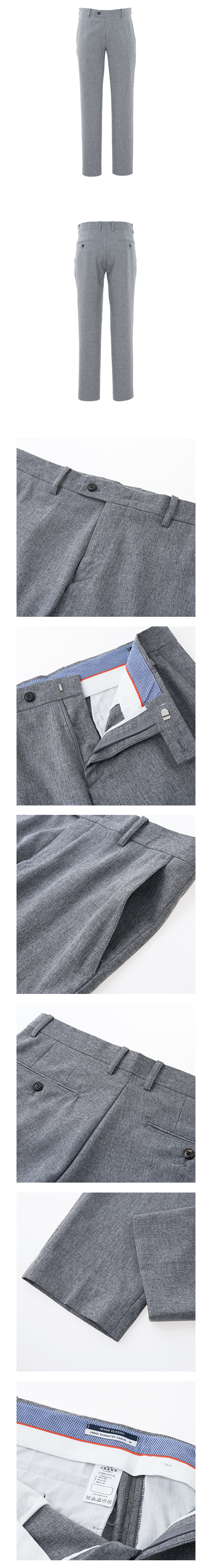 투톤의 멜란지 컬러감과 심플하고 모던한 디자인과 핏이 멋스러운 그레이슬랙스입니다.