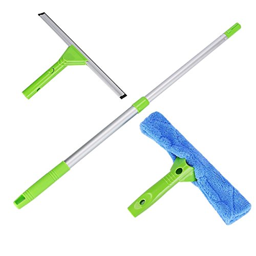 -. Feature : 【PREMIUM MATERIAL】Perfection combination of ultra-dense microfiber pad, silicone blade with soft edge, lightweight aluminum alloy base plate and handle, eco-friendly PP joints make this high quality window scrubber. / 【INNOVATIVE DESIGN】Velcro of great stickiness, the wide squeegee of covering the larger surface make the cleaning easier and quicker. The microfiber scrubber and squeegee blade could be operated together or separately. Extension pole allows you to adjust the height within 9.5 inches. / 【SAFE&EASY CLEANING】 This scrubber makes it possible to remove and absorb tough dirt and grime effectively with water of no chemical detergents. The machine-washable pad is long-lasting even for the hundred times of washing. No more harmful detergents, no more expensive cleaning costs. / 【GREAT VERSATILITY】 Soft silicone squeegee blade and ultra-dense microfiber pad make it work well on all surfaces needing thorough clean, ideal for cleaning windows, glass, showers, autos and mirrors. / 【ANMADE GUARANTEE】 Every piece of ANMADE window squeegee has the 60-DAY money back guarantee for your worry-free order.