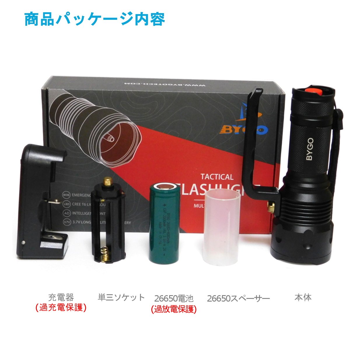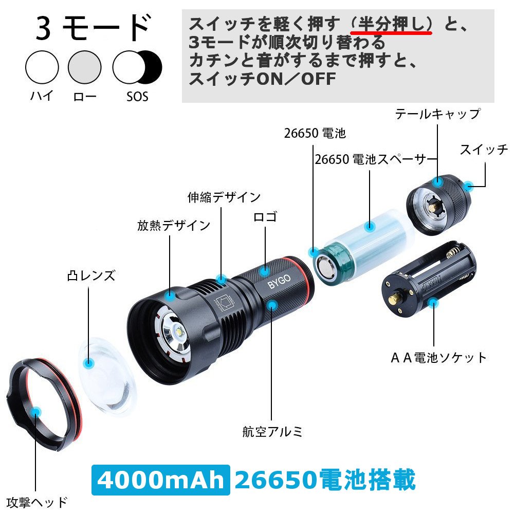 Battery type: BYGO 26650 rechargeable battery