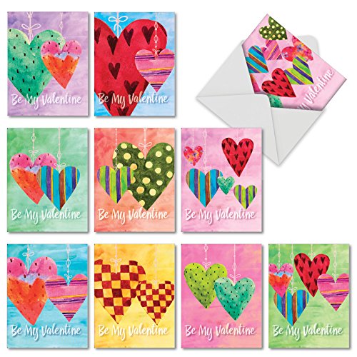 -. Title : M5656VDG-B1x10 Box Set of 10 'Watercolor Heartworks' Valentine's Day Greeting Card Featuring Gorgeous Hearts on a String, with Envelopes