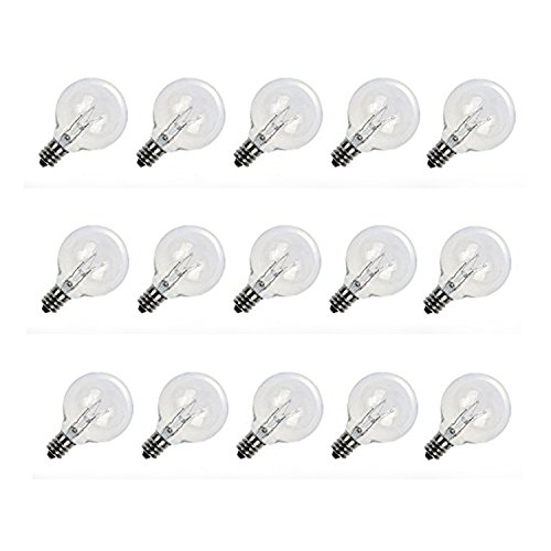 Pack of 15 Clear Globe G40 Candelabra Screw Base Light Bulbs, Warm Replacement Glass Bulbs for G40 Strands