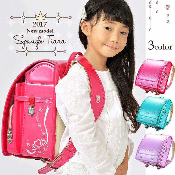 라라상 란도셀 소녀 2017년도 신작 span 콜 티아라 자수 11024 A4플랫 파일 대응 아쿠아 핑크 퍼플 펄 가공