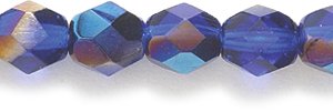 Preciosa Czech Fire 6 mm Faceted Round Polished Glass Bead, Medium Dark Sapphire Azuro Aurora Borealis, 150-Pack