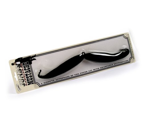 Each extravagant synthetic hair mustache is 16" (40.6 cm) wide when straight and features a flexible internal wire in case you want to shape it differently. Fits on your face with a rubber piece that gently clips to your nose.