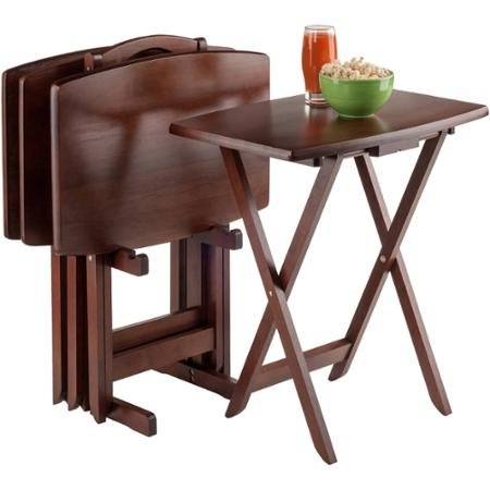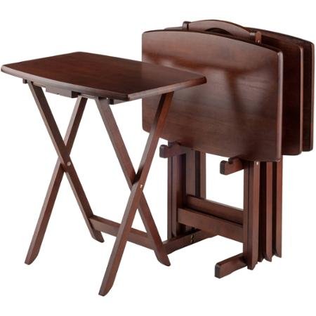 -. Feature : WINSOME Portable 5-Piece Oblong TV Tray Set, Brown