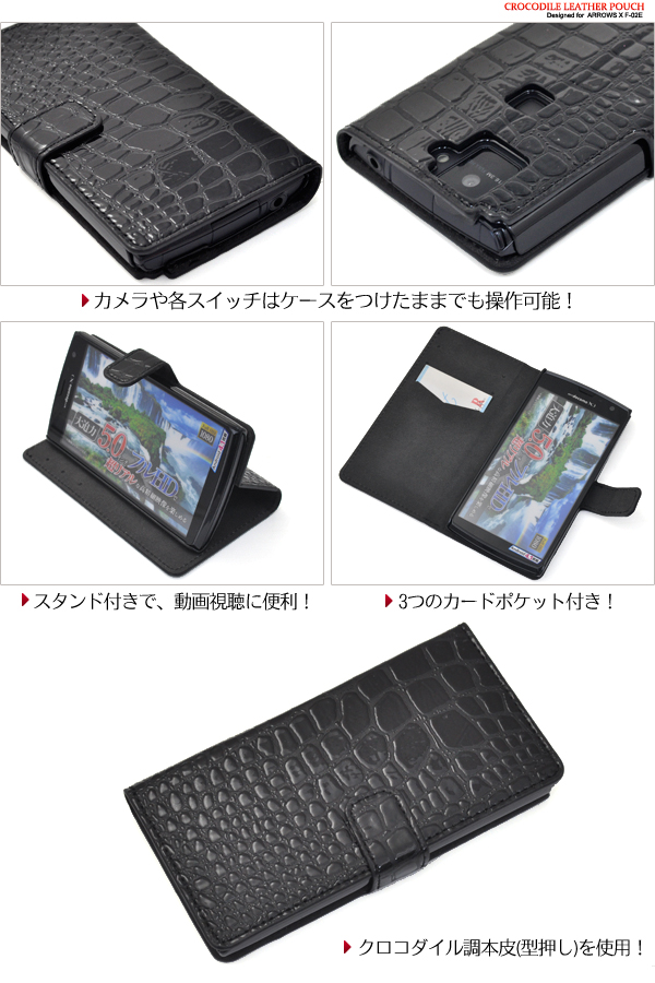 | ■クロコダイル調本皮使用! ARROWS X F-02E用クロコダイルスタンドケースポーチ | | | |
