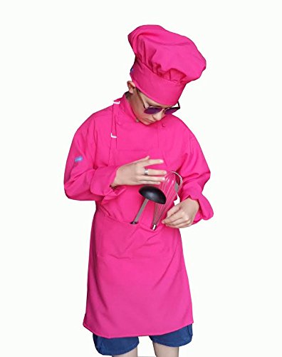 Chefskin Kids Child Chef Outfit includes Jacket Apron & Hat Toddler XS SM REG XL 2X (XS ( 3-5 Yrs Old), HOT PINK)