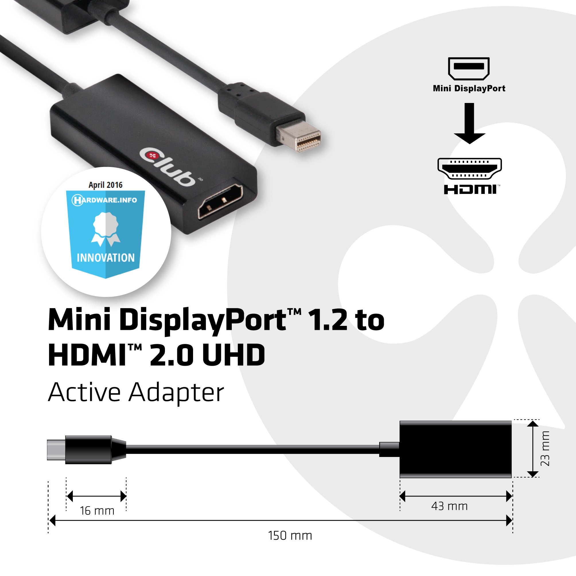 Conversion adapter for Club 3D Mini DisplayPort 1.2 to HDMI 2.0
