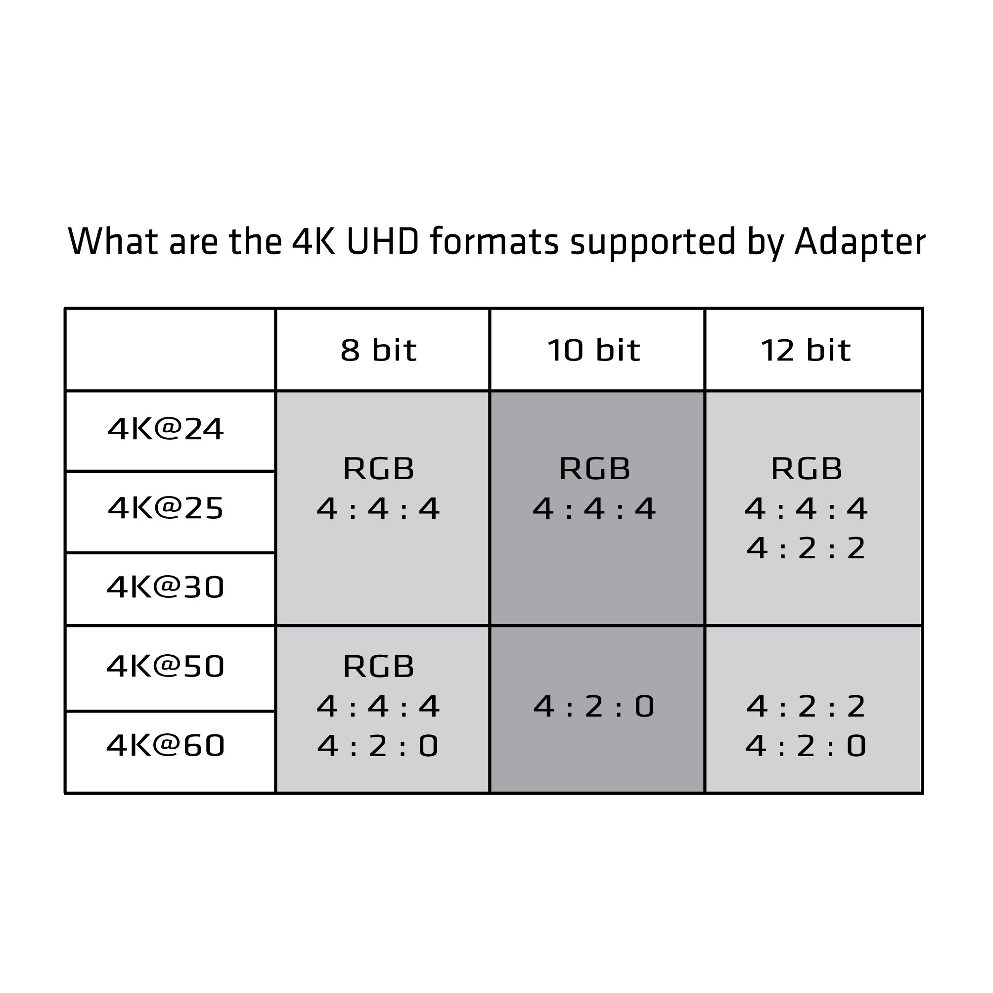 The format of 4K UHD supported by the CAC - 1170 adapter is as shown on the left.