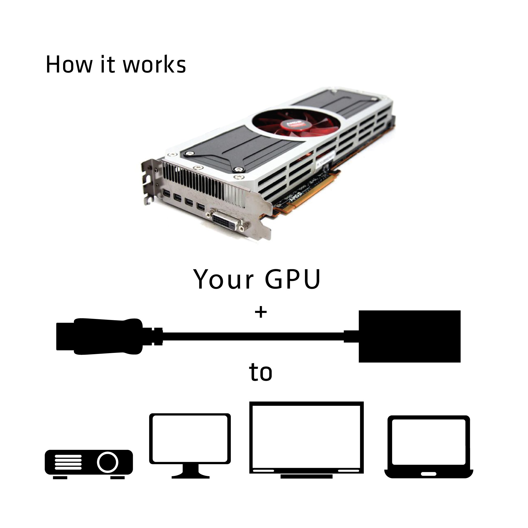 This adapter supports AMD GCN card, Nvidia® Maxwell card and Intel® Skylake HD 5XX series.