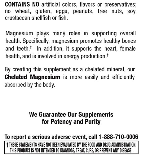 TRY OUR CHELATED MAGNESIUM OXIDE RISK-FREE FOR 30 DAYS - Every supplement comes with a no questions asked, 30 day money back guarantee. If you're not happy with the quality of our supplements, simply return your purchase for a full refund. We also provide free shipping on orders of $49 or more. Buy a bottle for yourself and a loved one to share in the amazing benefits of our Chelated Magnesium Oxide supplement!