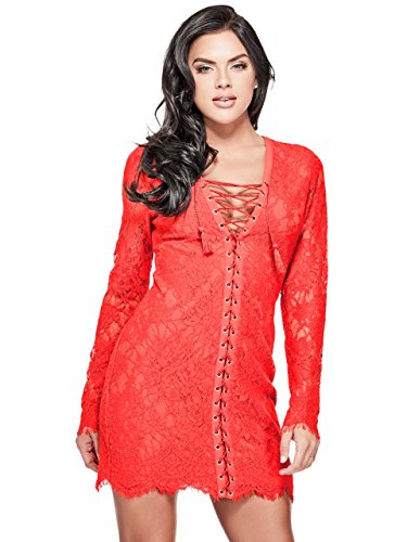 GUESS Women's Long Sleeve Dakota Dress, Brilliant White, 10