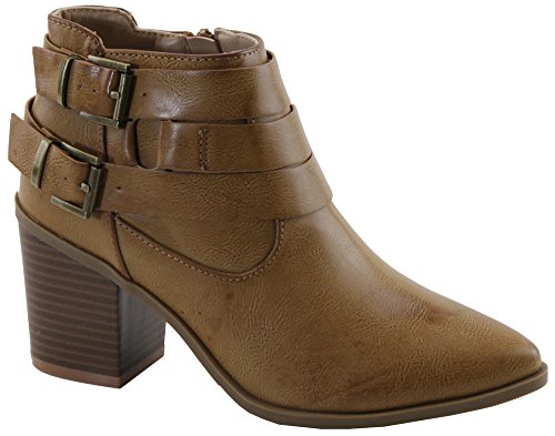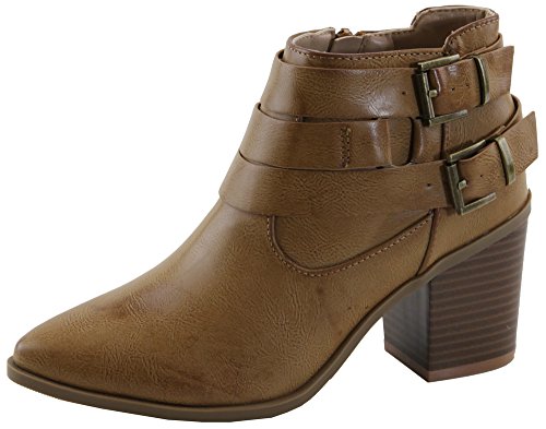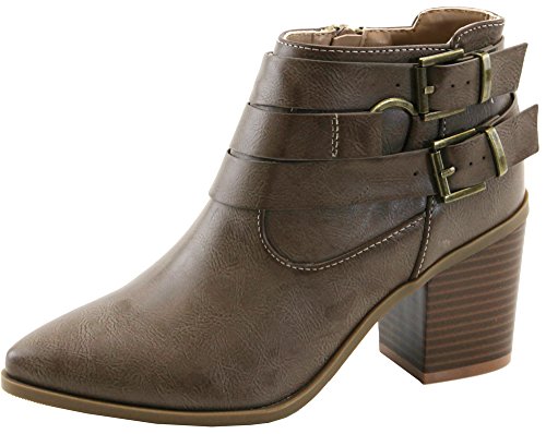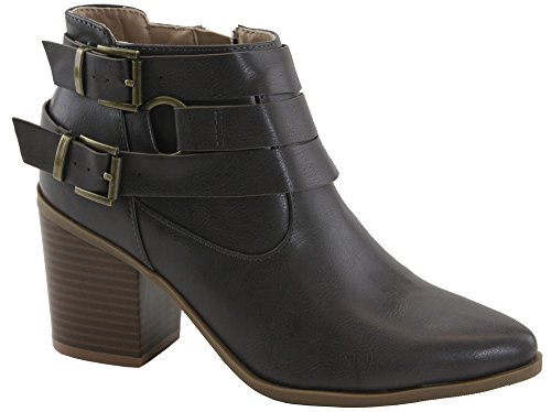 Lovmark Women's Pointed Toe Wrap Around Buckle Chunky Stacked Heel Ankle Bootie