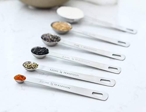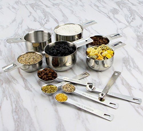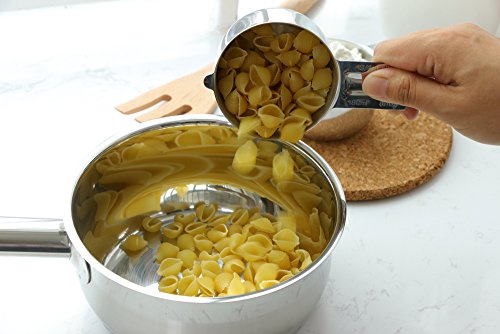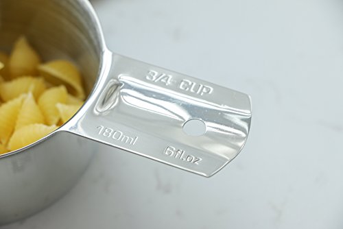 - "ML" and cup Size are clearly engraved on the cup body, as well as, U.S. and metric measurement are engraved on the handle of each spoon and cup. All markings are easy to read and will never fade or rub off.