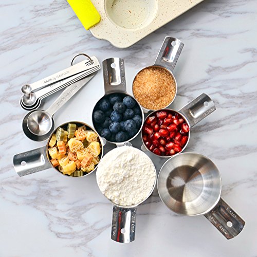 Rorence 18/8 stainless steel nesting measuring cups and spoons set of 12 for liquid and dry, dishwasher safe