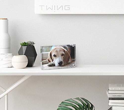 TWING 4X6" CLEAR ACRYLIC MAGNET PHOTO FRAME, DOUBLE SILDE THICK DESKTOP FRAMES 5 PCS This see through frame provides a quick and easy way to display and share your memories. The clear picture frame is made of two thick panels of super clear acrylic which are held together by four strong magnets. Photos are sandwiched securely between the panels and are easy to change. Two back-to-back pictures can be viewed from both sides. Good at home or the office.