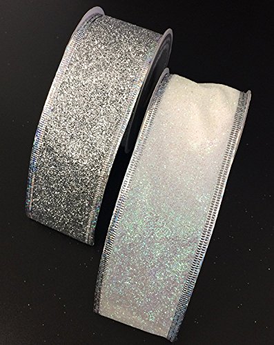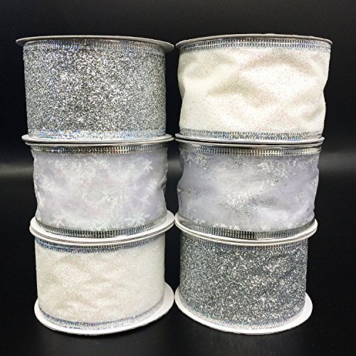 4 Rolls Assorted Patterns Classic Christmas Decorations Ribbons (2"W x 9FT Each), White/Silver