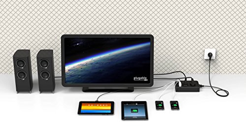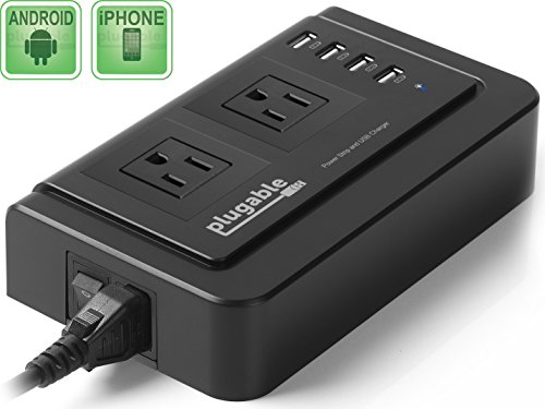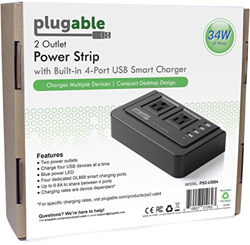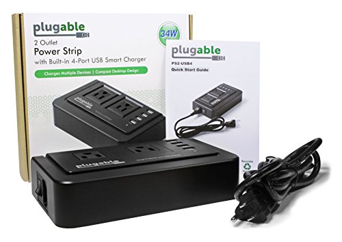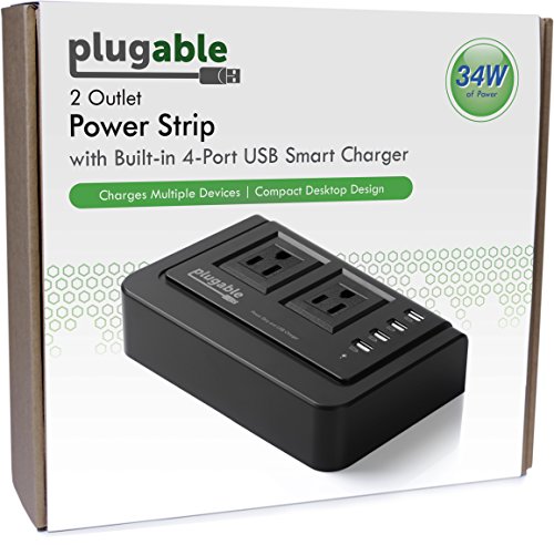 Plugable 2-Outlet Desk Power Strip with Built-In 4-Port 34W USB Universal Smart Charger (Compatible with Android, Apple iOS, and Windows Mobile Devices)