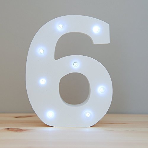 Product DescriptionSpecifications: Material: Wood Color: White Lights Size: Approx. 15.5x14x3cm/6.1inchx5.51inchx1.18inch Package Include: 1x LED Wooden number Light0