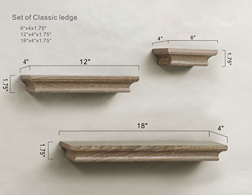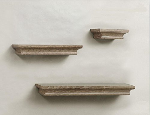 LightStan Decorative Wooden Display Floating Wall Shelf Set Grey Wash Finish of 3 pcs
