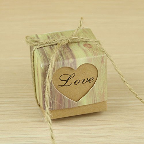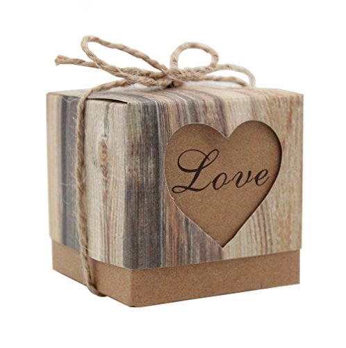 CXLKST Romantic Heart Candy Box for Wedding Decoration Vintage Kraft Wedding Favors and Gifts Box with Burlap Twine ,pack of 50