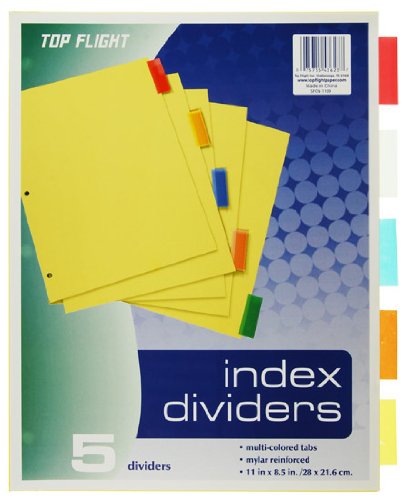 Top Flight Loose-Leaf Tabbed Dividers, 3-Hole Punched, 1 Set of 5 Dividers includes Red, Yellow, Clear, Orange and Blue Tabs (4004131)