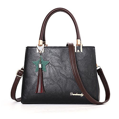 -. Feature : ♛♕【自由に切り替える2wayハンドバッグ】 シンプルの中に素直であるデザイン、手提げ肩掛けの自由切り替え、スター形とフリンジのチャームはアクセントとして、あなたの美しさを心ゆくまでアピールする2wayハンドバッグ、ショルダーバッグ。 / ♛♕【安心できるで高品質が見える 】 高品質の合皮レザーを使って丁寧に縫製されたレディースバッグ、雨や雪にも強いので、春夏秋冬オールシーズンでも安心にご使用頂けます。上品にコディーしやすいブラックで、どんな服装にもお似合います。 / ♛♕【コンパクトでしっかりした容量】 メインルームは三つになり、収納スペースが細かく分かれているので、たっぷり収納できてキレイに小物の整理ができます。背部にファスナーポケットがあり、スマホ収納の悩みは解決!出し入れ便利の上に、バイブもすぐ気づきます。大事の着信をミスしないように! / ♛♕【倒れない自立式】 形がしっかりしているので型崩れしにくく丈夫なつくり、鋲付きの底面で床や机に置いても安定して自立できます。 / ♛♕【レジャー·フォーマルにも活用できる】 大きすぎず小さすぎない、使い勝手の良いサイズ感です。通勤通学、デート、日常やフォーマルまで幅広く使えます。いろんなシーンで活躍してくれそうでとても楽しみにしてます。クリスマスや誕生日のプレゼントとしてもおすすめの一品です。