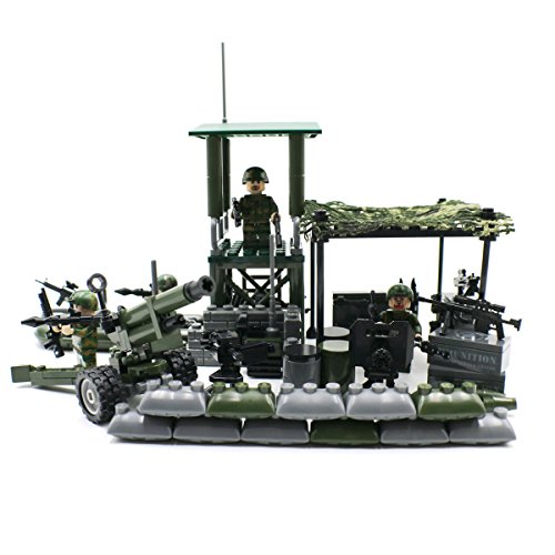 -. Title : Army Jungle Outpost with Artillery and Soldiers - Military Building Block Toy