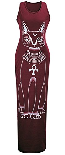 -. Feature : Material: Cotton,Polyester / Pattern: Cat Print / Style:Maxi Dress / Sleeve Style:Sleeveless,Dress Length:Full-Length / For Club Party Cocktail