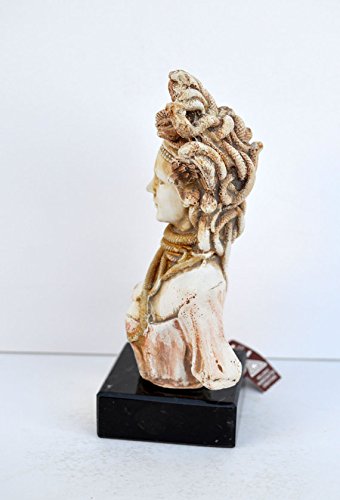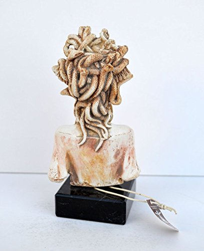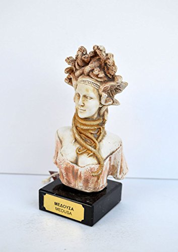 Studio : Estia Creations Publisher : Estia Creations Binding : Kitchen Product Description Medusa In Greek mythology Medusa, "guardian, protectress") was a monster, a Gorgon, generally described as having the face of a hideous human female with living venomous snakes in place of hair. Gazing directly upon her would turn onlookers to stone. Most sources describe her as the daughter of Phorcys and Ceto, though the author Hyginus (Fabulae, 151) interposes a generation and gives Medusa another chthonic pair as parents. Medusa was beheaded by the hero Perseus, who thereafter used her head as a weapon until he gave it to the goddess Athena to place on her shield. In classical antiquity the image of the head of Medusa appeared in the evil-averting device known as the Gorgoneion. (B147-1) Details: Condition: New, handmade in Greece. Approximately Height: 14cm - 5.5 inches Width: 7cm - 2.7 inches Weight: 330g Material: Casting stone 0
