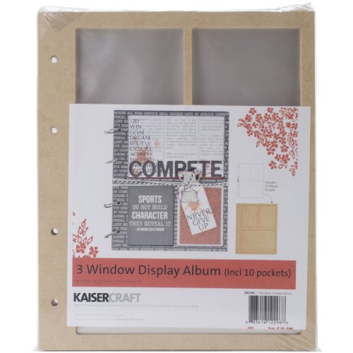 - This package contains one 8-1/2 x 6-3/4 x 1/2 inch three window display album with ten pocket pages and made of MDF craft wood