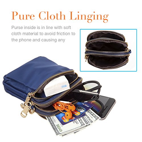 MINICAT cell phone purse have Multi-pockets inside which can hold money,credit cards .Spacious room with snap on closure can hold iPhone, keys, money, cards, wallet, headphones,passport, tickets, cash, credit cards and personal small items; Inner Structure:Practical Compact Multiple Pockets to Classify Your Personal Stuff