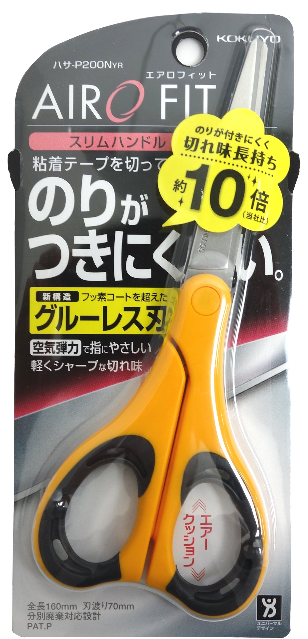 Kokuyo AiroFit Non-Stick Scissors - Slim Handle - Yellow Grip