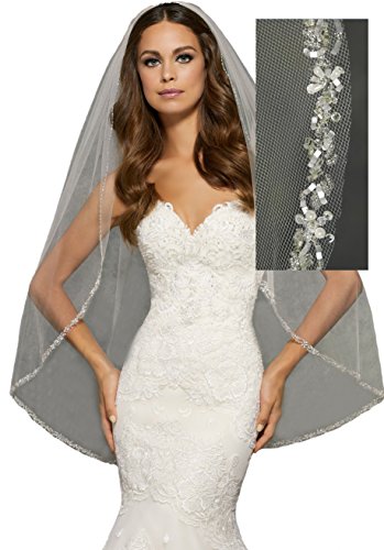 Picture yourself walking down the aisle dressed to the nines in your wedding outfit that took months of planning to complete. To experience a wedding ceremony that you will remember for the rest of your life, you must have a complete outfit right? Well having a veil is not only customary to compliment the wedding dress, but also completes the setting of a well-planned marriage ceremony. This beautiful wedding veil suits all brides well. This veil is easy to attach to the hair through a metal comb so it won't add trouble to any of the preparation plans already set in stone. So why not give yourself an aura of grandeur on your big day? This veil completes the look that you are looking for on the biggest day of your life.