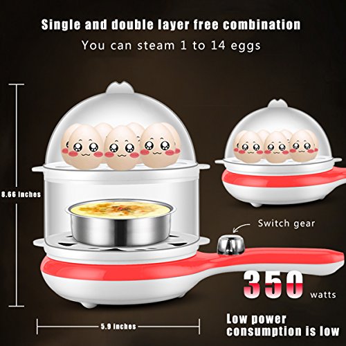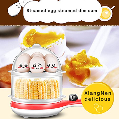 LARGE CAPACITY WITH TWO LAYER:It is designed with two layers,you can cook eggs and also vegetables and other food at the same time,but also the liquid will be ok.One egg cooker but with multifunctions,it is time and enegy saving,also bring you too much convenient.