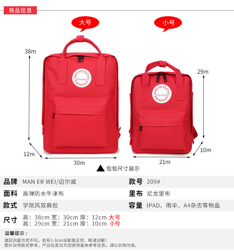 温馨提示:由于部份亲们反应此款背带细觉得心里面不踏实,特此经我们的设计师特意打造了另一个型号209#背带,手挽加宽加厚版本,还有小号迷你款哦,超萌可爱,现已正式上市面向广大亲们。韩国原宿东大门ulzzang软妹紫小号书包双肩背包女纯色学生书包